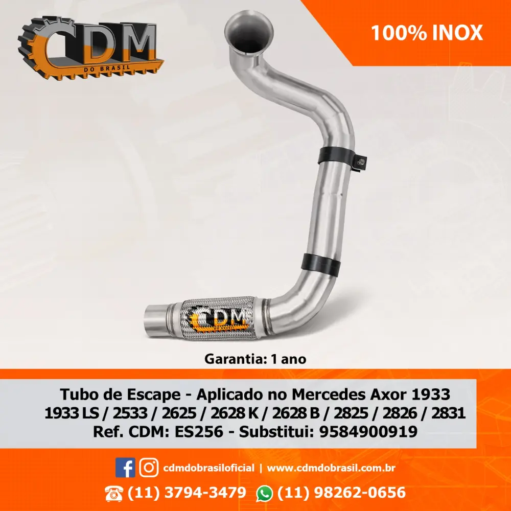 Série Similar: 9584900919- Tubo de Escape/ Escapamento – Aplicado MBB Axor 1933 – 2533 – 2625- 2628- 2825- 2826- 2831 100% Inox