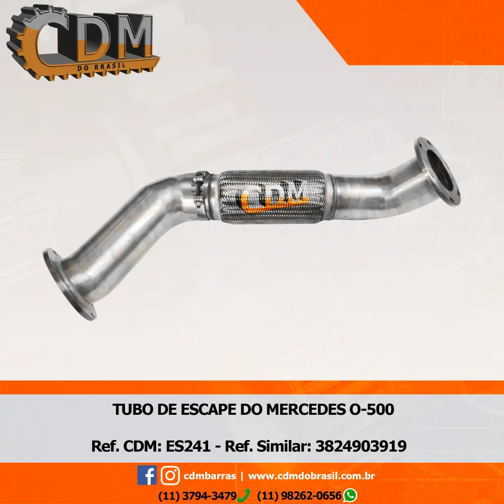 ES241.1 – Tubo de Escape/ Escapamento – Aplicado em Mercedes O-500 – Com Abraçadeira – Padrão CDM (ES241.1)