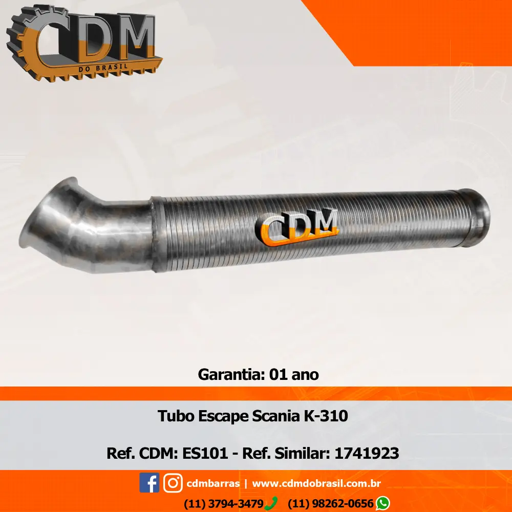 Fabricante – ES101 Tubo de Escape / Escapamento – Aplicado no Scania K124 / K310 – Ref. Similar: 1741923 comprimento: 850mm Ref. Similar: 1741923 diâmetro do tubo: 115mm Item de reposição: NT Referência: ES101